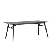 Informations Techniques : Dimensions : L. 195 x l. 95 x H. 75 cm Matières : Plateau : MDF & Placage Piètement : Acier Spécificités : Pratique & Tendance Table à manger design Jusqu'à 4/6 couverts Finition des pieds en poudre noire Forme rectangulaire Poids : 42,20 kg Couleur : Noir