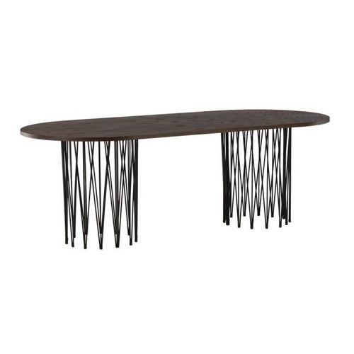 Informations Techniques : Dimensions : L. 220 x l. 100 x H. 74 cm Matières : Plateau : Placage, MDF Piètement : Acier Spécificités : Pratique & Utile Table à manger design Jusqu'à 8 couverts Pieds cylindrique décoratif Finition des pieds laquée et poudre noire Forme ovale Nombre de colis : 2 Poids