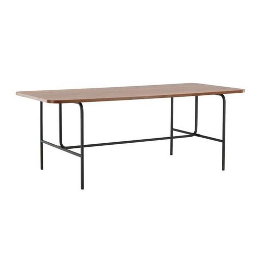 Informations Techniques : Dimensions : L. 200 x l. 90 x H. 75 cm Plateau : H. 2 cm Matière : Plateau : MDF & Placage Piètement : Acier Spécificités : Pratique & Tendance Table à manger design Jusqu'à 6 couverts Revêtement en poudre noire Forme rectangulaire Nombre de colis : 2 Capacité de charge ma