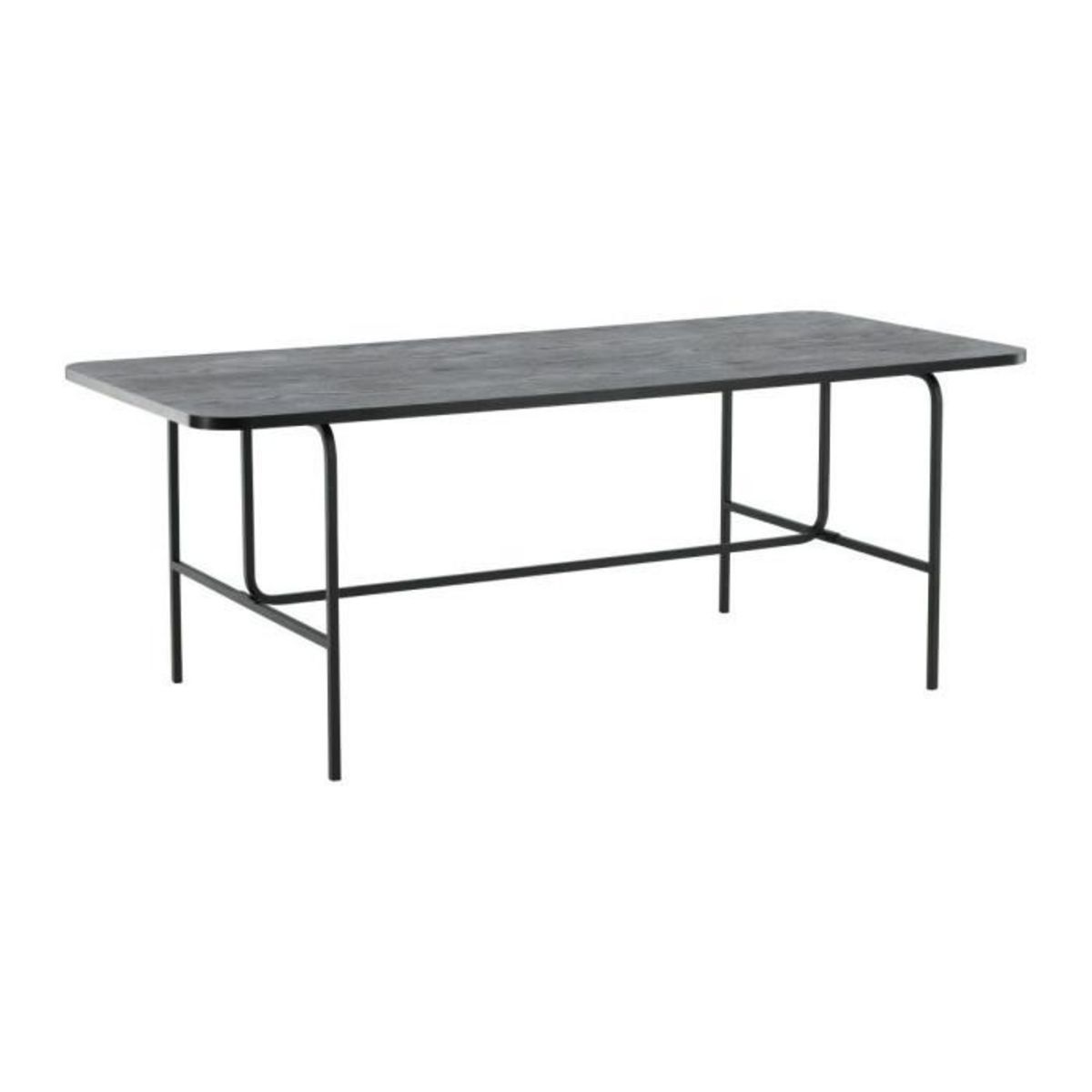 Informations Techniques : Dimensions : L. 200 x l. 90 x H. 75 cm Plateau : H. 2 cm Matières : Plateau : MDF & Placage Piètement : Acier Spécificités : Pratique & Tendance Table à manger design Jusqu'à 6 couverts Revêtement en poudre noire gros grain Forme rectangulaire Nombre de colis : 2 Capacité