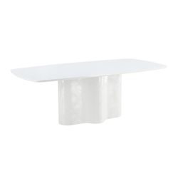 Sa teinte blanche diffuse lumière et légèreté, agrandissant visuellement l'espace et créant une ambiance chaleureuse. Alliant stabilité, espace et design raffiné, c'est une table de repas pensée pour durer, que ce soit pour les petits-déjeuners de tous les jours ou les dîners prolongés entre amis.