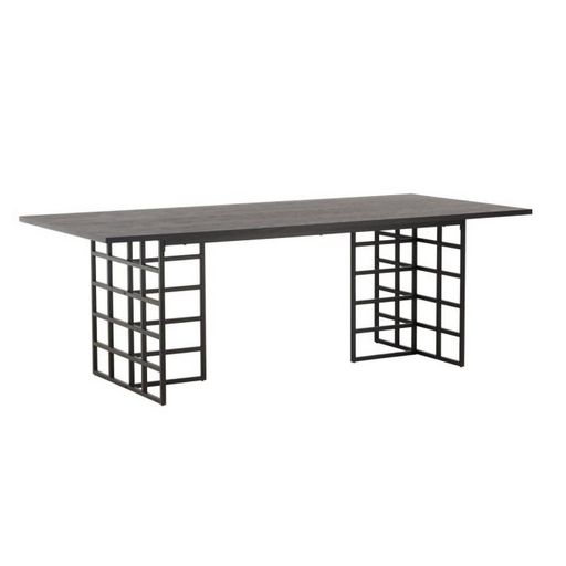 Informations Techniques : Dimensions : L. 220 x l. 100 x H. 75 cm Plateau : H. 2,5 cm Matières : Plateau : Placage, MDF Piètement : Aluminium Spécificités : Pratique & Tendance Table à manger design Jusqu'à 8 couverts Finition laquée du plateau Pieds avec revêtement en poudre noire Forme rectangul