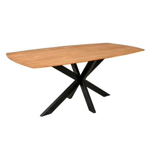 Informations Techniques : Dimensions : L. 180 x l. 90 x H. 75 cm Matières : Plateau : Bois Massif (Teck) Piètement : Métal Spécificités : Stable & Solide Table à manger design Pour 6 à 8 personnes Pied mikado À monter soi-même Nombre de colis : 2 Poids : 63 kg Couleur : Naturel