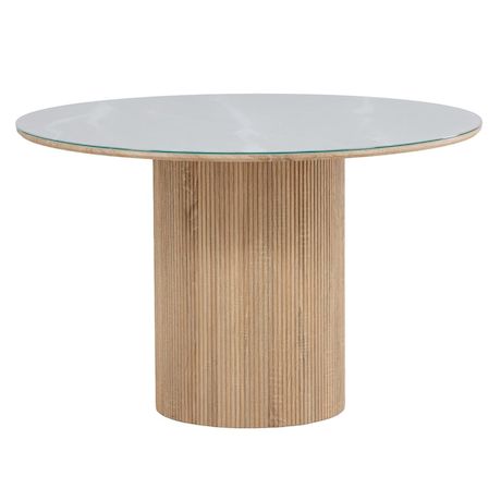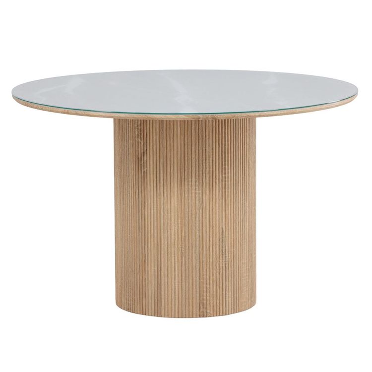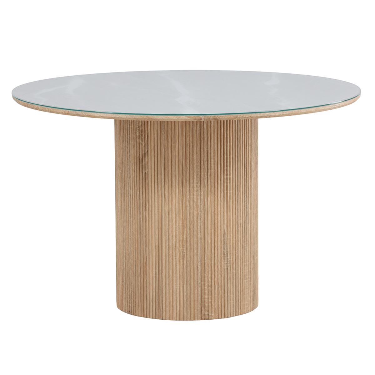 Table à Manger en Verre Haron 120cm Blanc & Naturel