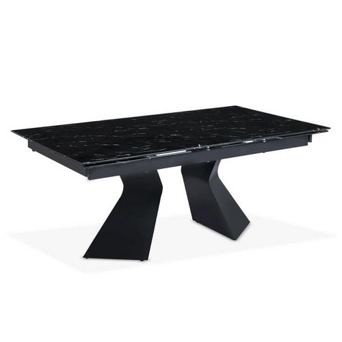 Informations Techniques : Dimensions : L. 180-260 x l. 100 x H. 75 cm Sans rallonge : L. 180 x l. 100 x H. 75 cm Avec rallonges : L. 260 x l. 100 x H. 75 cm Matières : Plateau : Verre Piètement : Métal Spécificités : Design & Fonctionnelle Table extensible Imprimé marbre Jusqu'à 10 personnes Forme r