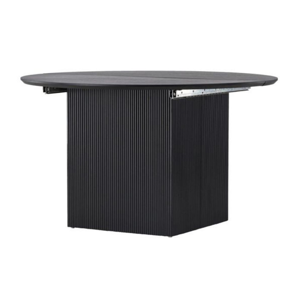 Informations Techniques : Dimensions : D. 130 x H. 75 cm Avec extension : L. 180 x l. 130 x H. 75 cm Plateau : H. 2,5 cm Matière : MDF Spécificités : Pratique & Tendance Table à manger extensible Pour 4/6 couverts Revêtement peinture laquée noire Forme ronde Nombre de colis : 3 Capacité de charge ma