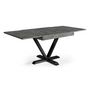 Informations Techniques : Dimensions : L. 90-180 x l. 90 x H. 75 cm Matières : Métal & MDF Spécificités : Design & Pratique Table de repas extensible Convient jusqu'à 8 convives Plateau effet béton Rallonges incluses À monter soi-même Nombre de colis : 2 Couleur : Gris & Noir