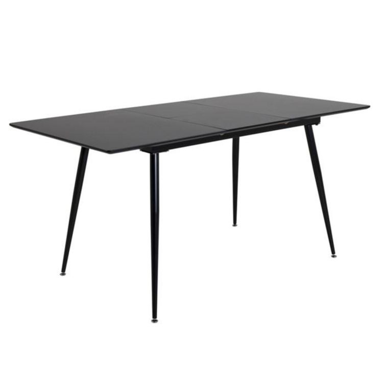 Informations Techniques : Dimensions : L. 120-160 x l. 80 x H. 75 cm Plateau : H. 2 cm Matières : Plateau : MDF Piètement : Acier Spécificités : Pratique & Tendance Table à manger extensible Jusqu'à 4/6 couverts Finition des pieds en poudre noire Forme rectangulaire Nombre de colis : 2 Poids : 29 k