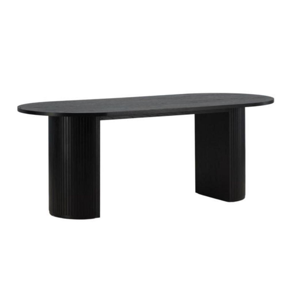 Informations Techniques : Dimensions : L. 200 x l. 90 x H. 75 cm Plateau : H. 1,8 cm Matières : MDF & Placage Spécificités : Pratique & Tendance Table à manger design Jusqu'à 6 couverts Forme ovale Nombre de colis : 2 Capacité de charge maximale : 80 kg Poids : 55,40 kg Couleur : Noir
