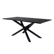 Informations Techniques : Dimensions : L. 180 x l. 90 x H. 76 cm Plateau : H. 2,5 cm Matières : MDF, Placage & Acier Spécificités : Tendance & Intemporelle Table à manger rectangulaire Jusqu'à 6 convives Piètement croisé Revêtement en poudre Nombre de colis : 2 Poids max supporté : 200 kg Poids : 39