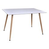 Informations Techniques : Dimensions : L. 120 x l. 80 x H. 75 cm Plateau : H. 1,5 cm Matières : MDF & Acier Spécificités : Pratique & Élégante Table à manger rectangulaire Jusqu'à 4 convives Revêtement laqué Nombre de colis : 2 Poids max supporté : 60 kg Poids : 19 kg Couleur : Blanc & Naturel