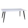 Informations Techniques : Dimensions : L. 180 x l. 90 x H. 75 cm Plateau : H. 1,5 cm Matières : MDF & Acier Spécificités : Pratique & Élégante Table à manger rectangulaire Jusqu'à 6 convives Revêtement laqué Nombre de colis : 2 Poids max supporté : 60 kg Poids : 32 kg Couleur : Blanc & Noir