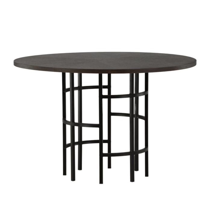 Informations Techniques : Dimensions : D. 115 x H. 74 cm Plateau : H. 2,5 cm Matières : Plateau : Placage, MDF Piètement : Acier Spécificités : Pratique & Tendance Table à manger design Jusqu'à 6 couverts Finition du pied laquée et poudre noire Forme ronde Nombre de colis : 2 Poids : 27,20 kg Coule