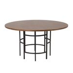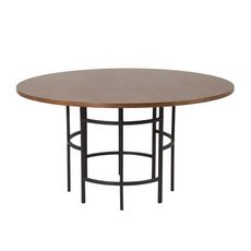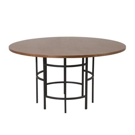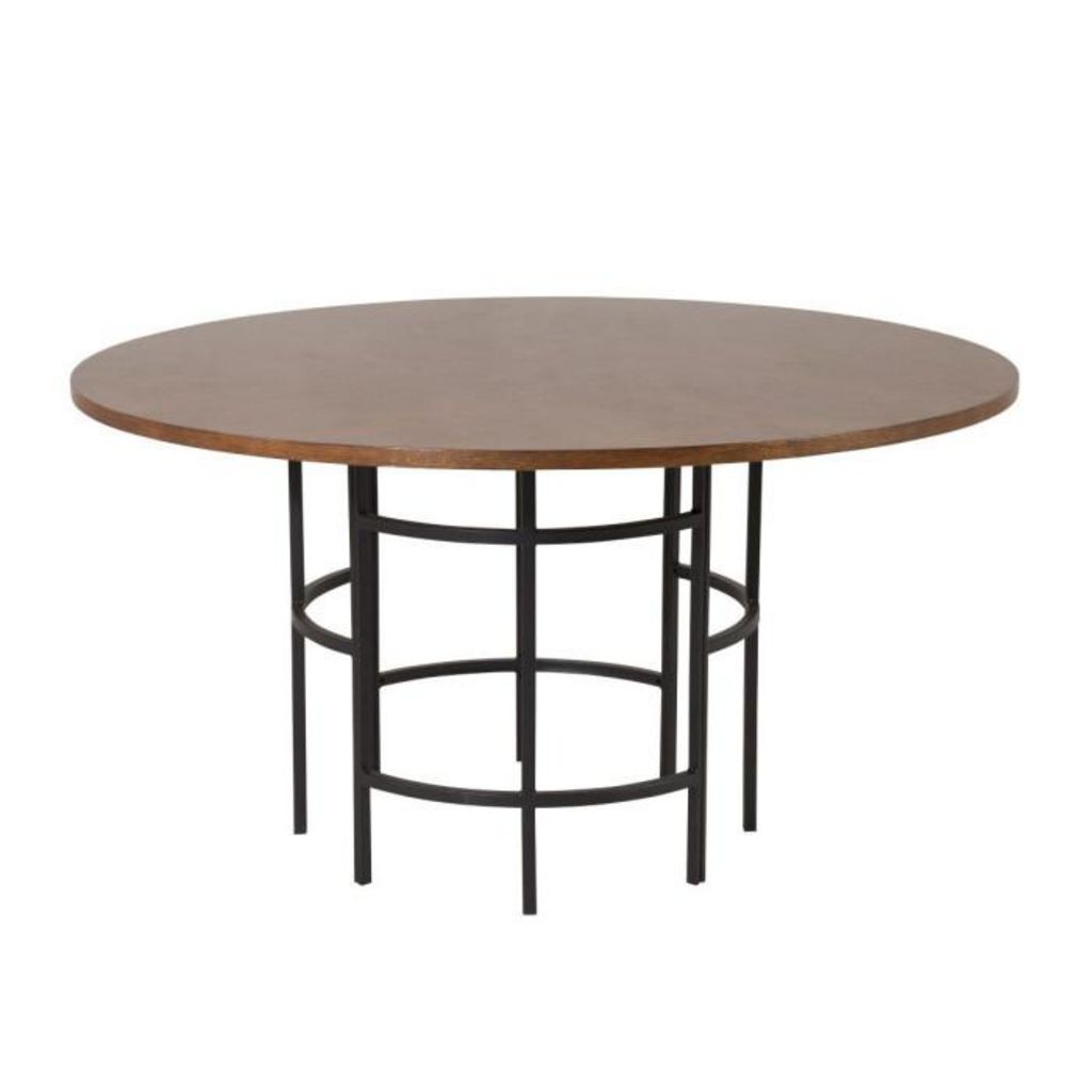 Informations Techniques : Dimensions : D. 140 x H. 75 cm Plateau : H. 2,5 cm Matières : Plateau : Placage & MDF Piètement : Acier Spécificités : Pratique & Tendance Table à manger design Jusqu'à 6 couverts Finition pieds : poudre noire Forme ronde Poids : 34 kg Couleur : Marron