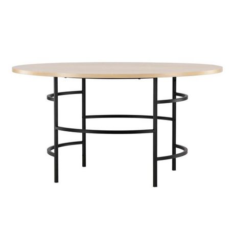 Informations Techniques : Dimensions : D. 140 x H. 74 cm Plateau : H. 3 cm Matières : Plateau : MDF Piètement : Métal Spécificités : Élégante & Intemporelle Table de repas ronde Jusqu'à 6 personnes Poids : 37,8 kg Couleur : Naturel & Noir