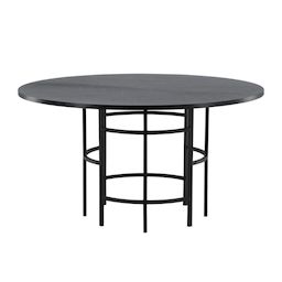 Informations Techniques : Dimensions : D. 140 x H. 74 cm Plateau : H. 2,5 cm Matières : Plateau : Placage & MDF Piètement : Acier Spécificités : Pratique & Tendance Table à manger design Jusqu'à 6 couverts Finition pieds : poudre noire Forme ronde Poids : 34 kg Couleur : Noir