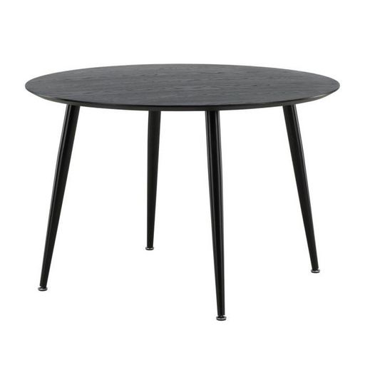 Informations Techniques : Dimensions : D. 115 x H. 75 cm Plateau : H. 2,5 cm Matières : Plateau : MDF & Placage Piètement : Acier Spécificités : Pratique & Tendance Table à manger design Jusqu'à 4 couverts Revêtement en poudre noire Forme ronde Nombre de colis : 2 Capacité de charge maximale : 30 k