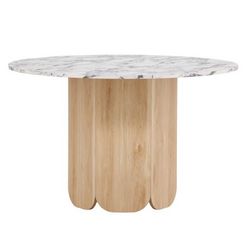 Table à Manger Ronde Effet Calacatta Tekla 120cm Gris & Naturel