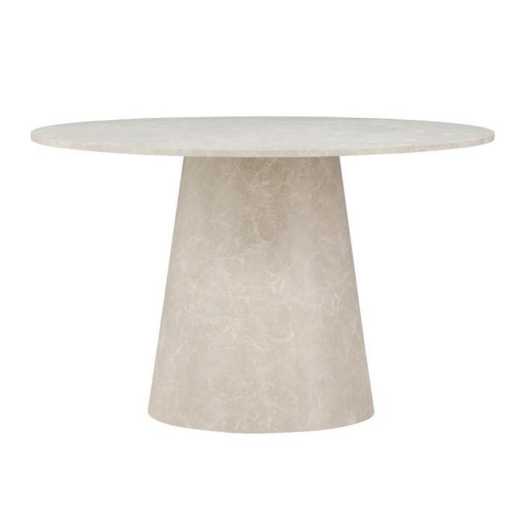 Informations Techniques : Dimensions : D. 120 x H. 75 cm Plateau : H. 2 cm Matière : MDF Spécificités : Pratique & Tendance Table de repas ronde Jusqu'à 4 couverts Design effet marbre Nombre de colis : 2 Poids max supporté : 100 kg Poids : 36 kg Couleur : Beige
