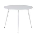 Informations Techniques : Dimensions : D. 100 x H. 75 cm Plateau : H. 1,6 cm Matières : Plateau : MDF Piètement : Acier Spécificités : Pratique & Tendance Table à manger design Jusqu'à 4 couverts Revêtement en poudre blanche Forme ronde Nombre de colis : 2 Capacité de charge maximale : 30 kg Poids