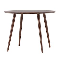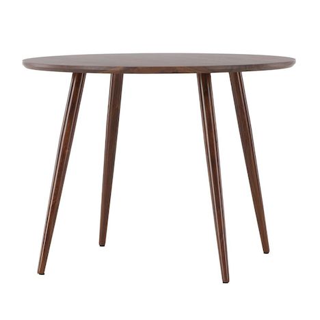Informations Techniques : Dimensions : D. 100 x H. 75 cm Plateau : H. 2,5 cm Matières : Plateau : MDF Piètement : Acier Spécificités : Pratique & Tendance Table à manger design Jusqu'à 4 couverts Revêtement pieds : effet bois Forme ronde Nombre de colis : 2 Capacité de charge maximale : 50 kg Poids