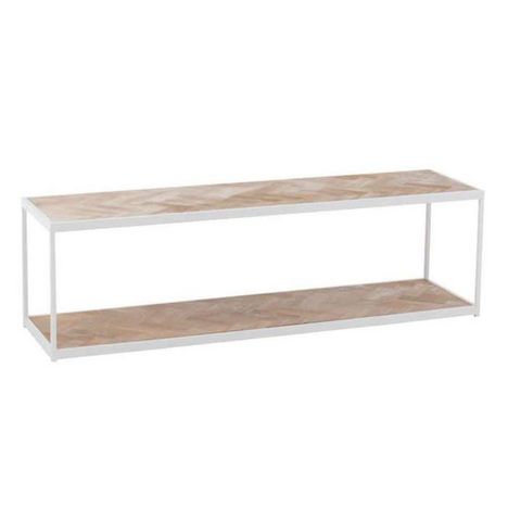 Informations Techniques : Dimensions : L. 150 x l. 40 x H. 45 cm Matières : Bois & Métal Spécificités : Pratique & Tendance Table Basse Design 2 Niveaux Forme Rectangulaire Poids : 20 kg Couleur : Naturel & Blanc