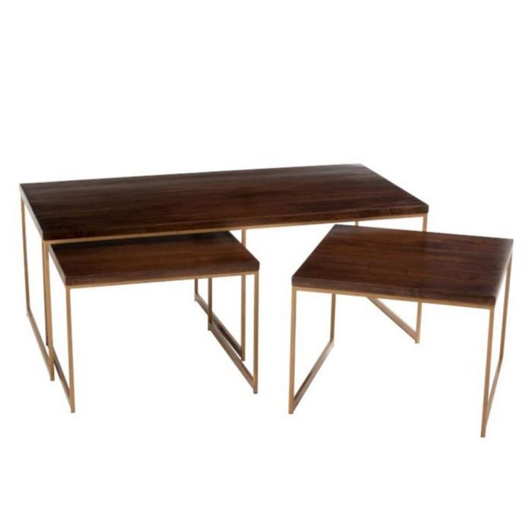 Informations Techniques : Dimensions : L. 120 x l. 60,3 x H. 46,5 cm Matière : Bois (Manguier) & Fer Spécificités : Design & Contemporain Table Basse design 3 Parties Poids : 28,86 kg Couleur : Marron