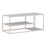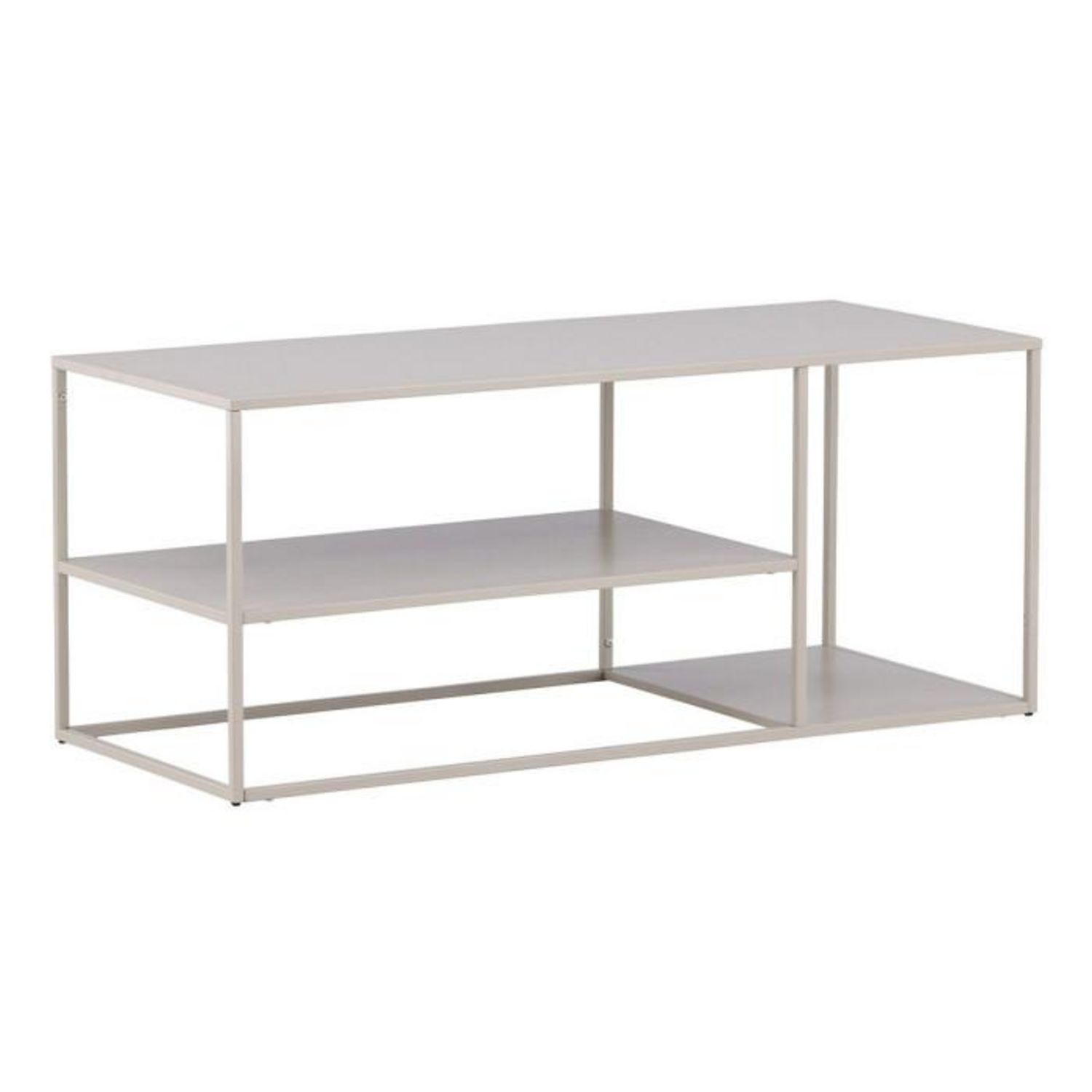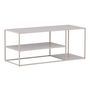 Informations Techniques : Dimensions : L. 120 x l. 50 x H. 50 cm Matière : Acier Spécificités : Moderne & Pratique Table basse avec étagères Revêtement poudre de résine époxy Poids max supporté : 10 kg Poids : 11 kg Couleur : Beige