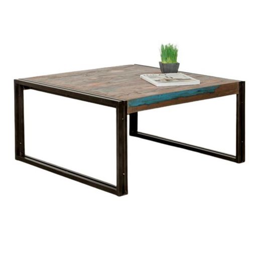 Table Basse Carré en Teck Industriel Loft 80cm Naturel