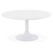Informations Techniques : Dimensions : D. 90 x H. 45 cm Matières : Bois aggloméré & Métal Spécificités : Epaisseur de la tablette : 1,8 cm Dimension de la base : 43 cm Livré démonté Poids : 24 kg Nombre de colis : 3 Couleur : Blanc