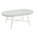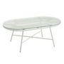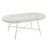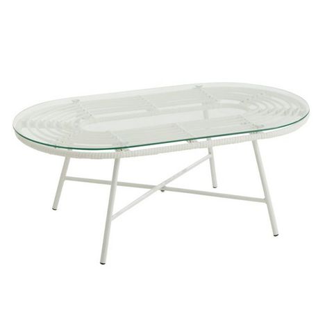 Informations Techniques : Dimensions : L. 90 x l. 50 x H. 35 cm Matières : Métal & Verre Spécificités : Tendance & Moderne Table Basse Forme Ovale Convient à un Usage Extérieur Capacité Portante : 35 kg A monter soi-même Poids : 8,6 kg Couleur : Blanc