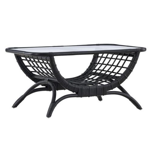 Informations Techniques : Dimensions : L. 95 x l. 60,5 x H. 48,5 cm Matières : Rotin & Verre Spécificités : Tendance & Utile Table basse d'extérieur Avec étagère Poids : 4,6 kg Couleur : Noir