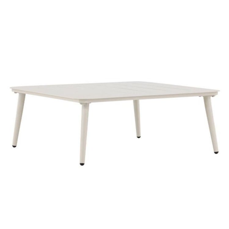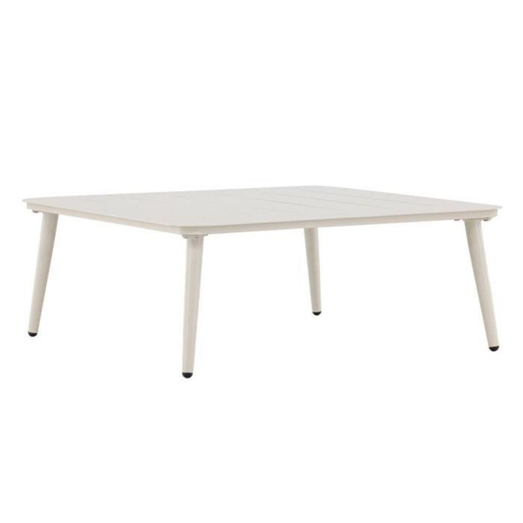 Informations Techniques : Dimensions : L. 90 x l. 90 x H. 34 cm Plateau : H. 1 cm Matière : Aluminium Spécificités : Élégante & Robuste Table basse d'extérieur Forme carrée Poids : 9,8 kg Couleur : Beige