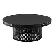 Informations Techniques : Dimensions : D. 100 x H. 40 cm Plateau : H. 6,3 cm Matière : Acier Spécificités : Robuste & Moderne Table basse ronde Design industriel ajouré Revêtement en poudre Nombre de colis : 2 Poids max supporté : 150 kg Poids : 30,65 kg Couleur : Noir