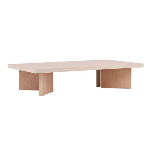 Informations Techniques : Dimensions : L. 140 x l. 80 x H. 30 cm Plateau : H. 4 cm Matière : MDF Spécificités : Unique & Tendance Table basse design Revêtement laqué blanchi à la chaux Nombre de colis : 1 Poids max supporté : 80 kg Poids : 32 kg Couleur : Naturel