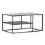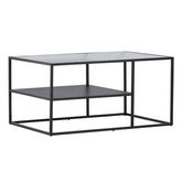 Informations Techniques : Dimensions : L. 90 x l. 60 x H. 45 cm Plateau : H. 2 cm Matières : Acier & Verre Spécificités : Moderne & Design Table basse avec étagère Plateau en verre Revêtement en poudre époxy Nombre de colis : 1 Poids max supporté : 29 kg Poids : 11 kg Couleur : Noir
