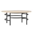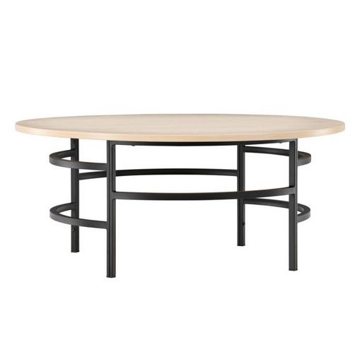 Informations Techniques : Dimensions : D. 100 x H. 43 cm Plateau : H. 2 cm Matières : MDF & Métal Spécificités : Élégant & Moderne Table basse ronde Piètement en métal Poids max supporté : 30 kg Poids : 23,5 kg Couleur : Naturel & Noir