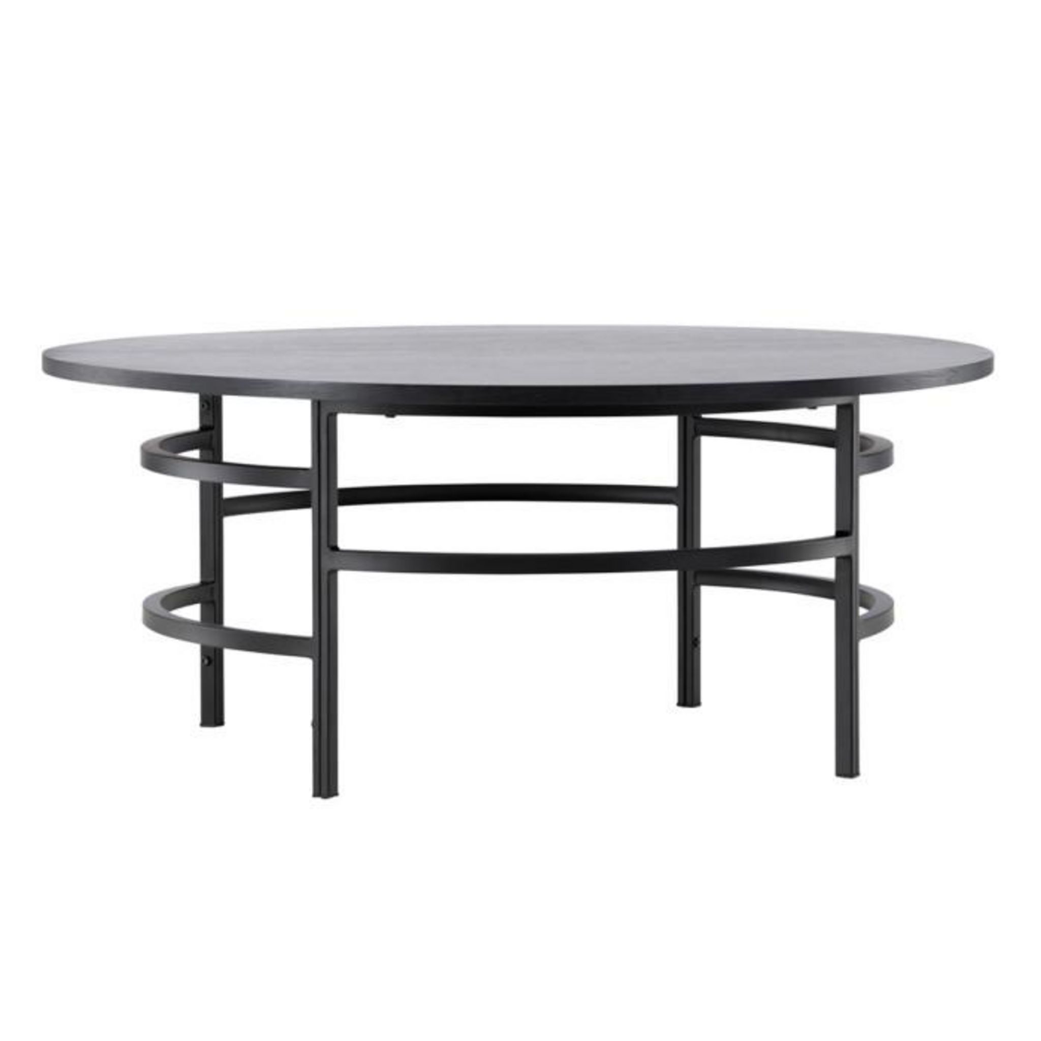 Informations Techniques : Dimensions : D. 100 x H. 43 cm Plateau : H. 2 cm Matières : MDF & Métal Spécificités : Élégant & Moderne Table basse ronde Piètement en métal Poids max supporté : 30 kg Poids : 23,5 kg Couleur : Noir