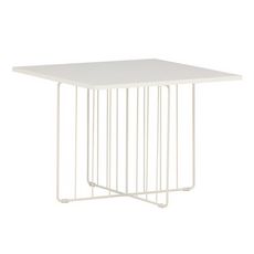 Informations Techniques : Dimensions : L. 60 x l. 60 x H. 45 cm Plateau : H. 1,8 cm Matières : Plateau : MDF Piètement : Acier Spécificités : Pratique & Tendance Table basse design Base avec treillis décoratif Revêtement en poudre blanche Nombre de colis : 2 Poids : 6,4 kg Couleur : Blanc