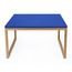 Informations Techniques : Dimensions : L. 60 x l. 50 x H. 34 cm Matières : Plateau : MDF verni Pieds : Bois (Chêne) Spécificités : Tendance & Original Table Basse Design Style Scandinave Poids : 10 kg Couleur : Bleu & Naturel