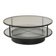Informations Techniques : Dimensions : D. 100 x H. 40 cm Plateau : H. 0,5 cm Matières : Verre & Acier Spécificités : Élégante & Moderne Table basse ronde Avec étagère Finition noire mate Nombre de colis : 2 Poids max supporté : 30 kg Poids : 25,52 kg Couleur : Noir