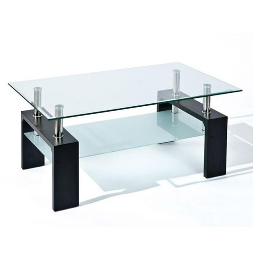 Informations Techniques : Dimensions : L. 100 x P. 60 x H. 45 cm Matières : Métal, Verre Sécurit & Panneaux de Particules Spécificités : Élégant & Design Plateau supérieur en verre Sécurit avec bords biseautés Plateau inférieur en verre sablé Nombre de colis : 2 Poids : 23,5 kg Couleur : Noir