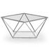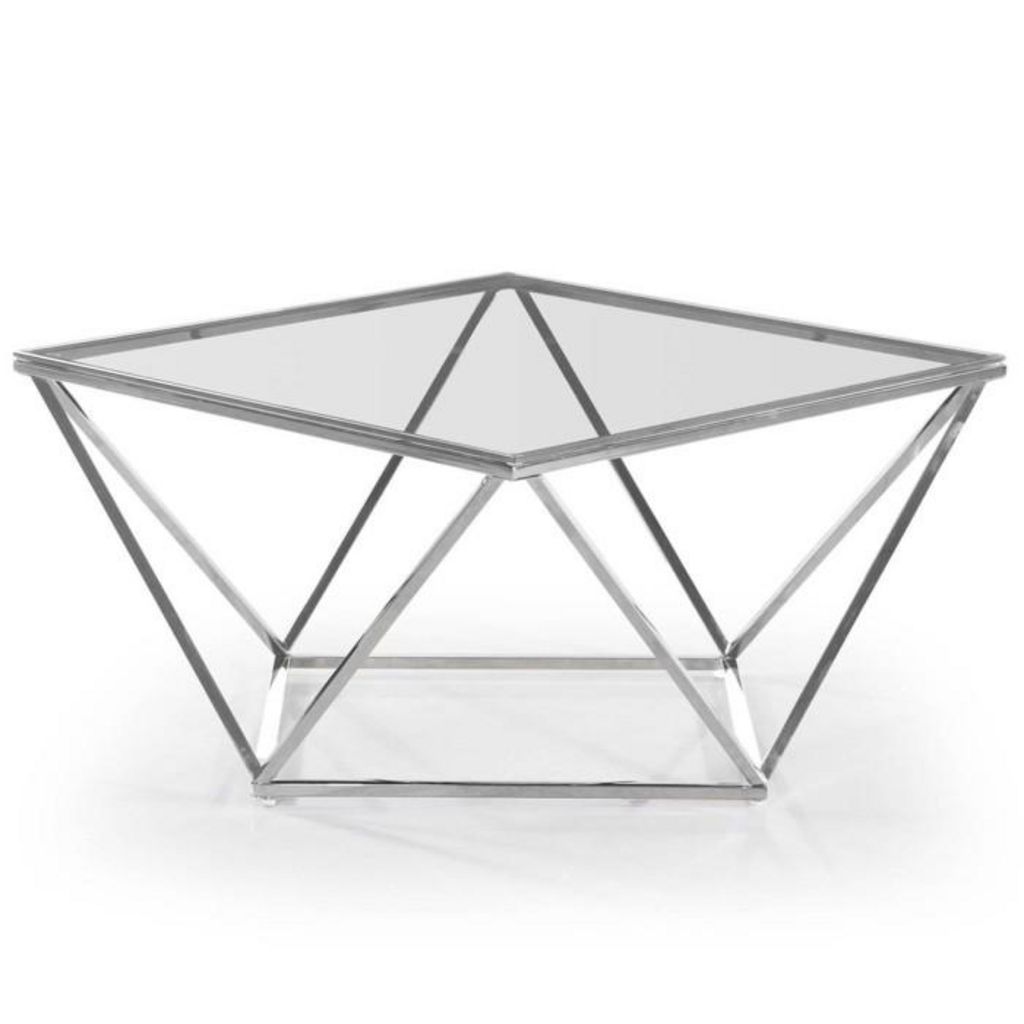 Informations Techniques : Dimensions : L. 80 x l. 80 x H. 45,5 cm Matières : Plateau : Verre Pieds : Inox Spécificités : Design moderne & élégant Plateau de forme carré Pieds de forme atypique Nombre de colis : 1 Couleur : Argent