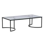 Informations Techniques : Dimensions : L. 140 x l. 70 x H. 42 cm Plateau : H. 0,8 cm Matières : Verre & Acier Spécificités : Design & Élégante Table basse rectangulaire Plateau en verre Revêtement enduit de poudre Nombre de colis : 1 Poids max supporté : 30 kg Poids : 29,8 kg Couleur : Noir