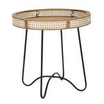 Informations Techniques : Dimensions : L. 60 x l. 60 x H. 60,5 cm Matières : Plateau : MDF Piètement : Métal Spécificités : Pratique & Déco Table basse ronde Tour du plateau effet cannage À monter soi-même Poids : 3,52 kg Couleur : Naturel & Noir