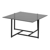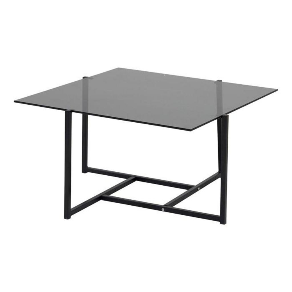 Informations Techniques : Dimensions : L. 80 x l. 80 x H. 45 cm Plateau : H. 1 cm Matières : Verre & Acier Spécificités : Moderne & Élégante Table basse carrée design Plateau en verre Revêtement en poudre Nombre de colis : 1 Poids max supporté : 50 kg Poids : 15 kg Couleur : Gris & Noir