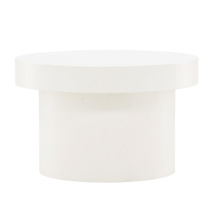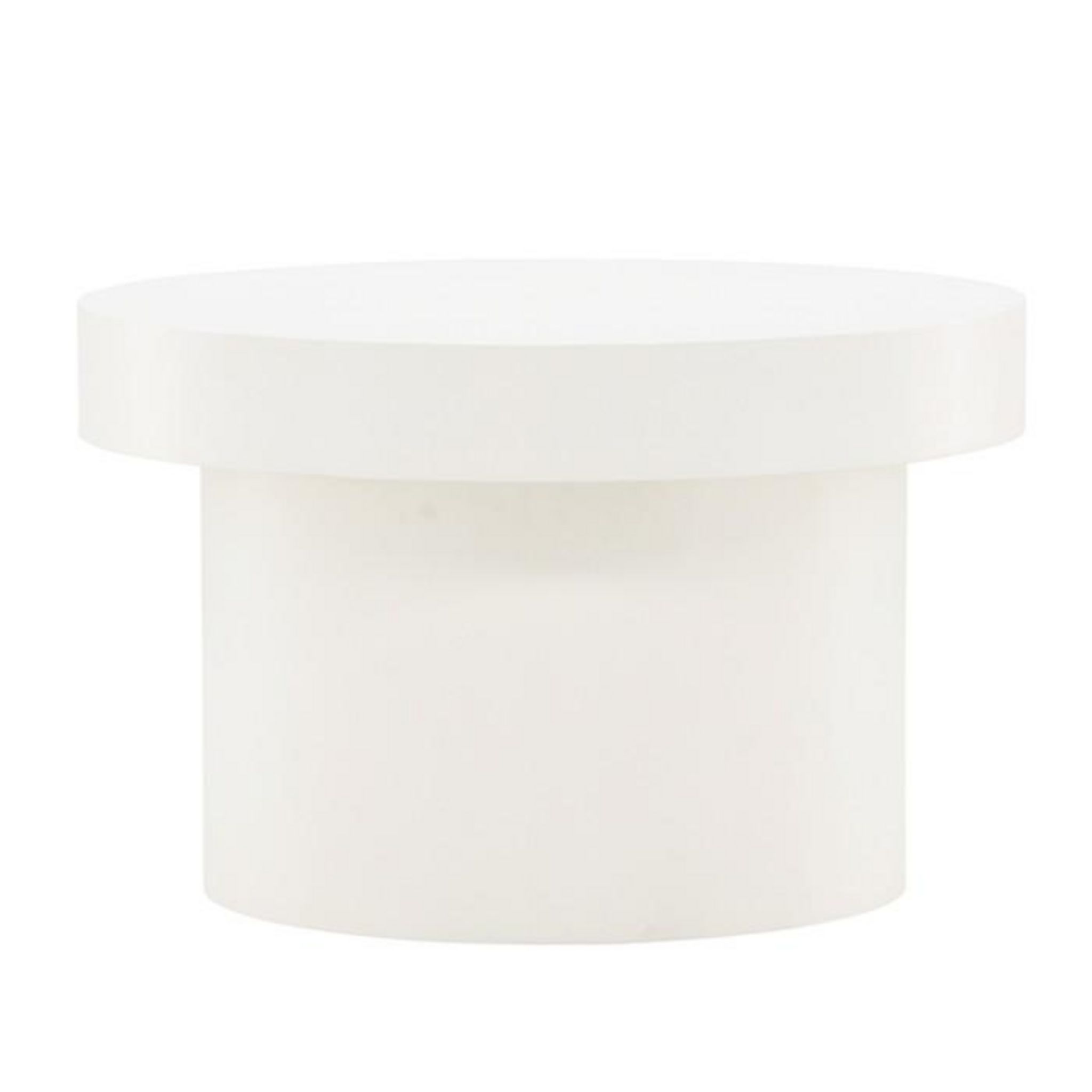 Informations Techniques : Dimensions : D. 80 x H. 50 cm Plateau : H. 10 cm Matière : MDF Spécificités : Pratique & Tendance Table basse design Forme ronde Poids max supporté : 100 kg Poids : 24,5 kg Couleur : Blanc