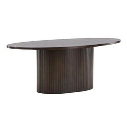 Informations Techniques : Dimensions : L. 120 x l. 55 x H. 45 cm Plateau : H. 2 cm Matière : MDF Spécificités : Moderne & Élégante Table basse ovale Piètement design nervuré Finition laquée Nombre de colis : 2 Poids max supporté : 30 kg Poids : 37 kg Couleur : Marron
