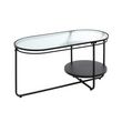 Informations Techniques : Dimensions : L. 90 x l. 42 x H. 49 cm Épaisseur du Verre : 5 mm Matières : Métal & Verre Trempé Spécificités : Moderne & Tendance Table Basse Design Forme Ovale Plateau en Verre Trempé Livré monté Nombre de colis : 1 Poids : 6,408 kg Couleur : Noir & Transparent
