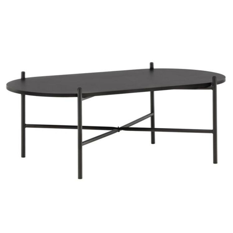 Informations Techniques : Dimensions : L. 120 x l. 60 x H. 45 cm Plateau : H. 3 cm Matières : MDF & Acier Spécificités : Pratique & Tendance Table basse design Plateau ovale Cadre en acier noir Revêtement peinture noir mat Nombre de colis : 1 Poids max supporté : 50 kg Poids : 10,3 kg Couleur : Noir